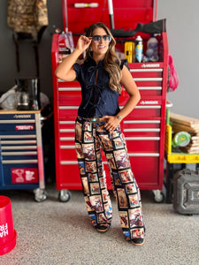 Our Rodeo Poster Pants are a total showstopper — featuring a bold, vintage Western poster print that brings classic cowboy charm to modern-day style. These lightweight, wide-leg pants are soft, breathable, and designed for comfort while making a serious statement.